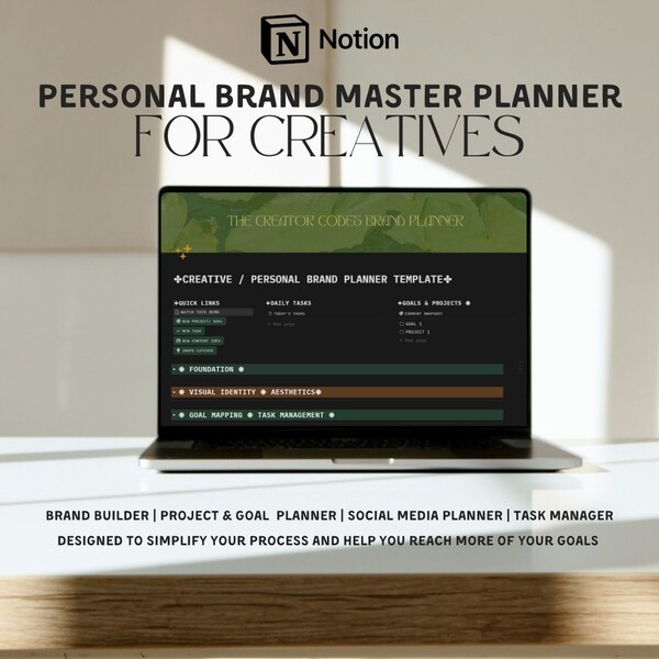 PERSONAL BRAND MASTER PLANNER | A Notion Template for Creative Brand Building, Goal & Project Management, & Content Creation Planning